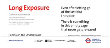 Another worthwhile project is Poems on the Underground, which highlights poetry for people to read as they make their journey. The one I first read is the poignant Long Exposure by Garous Abdolmalekian. It was something that filled my mind for the duration of my trip and stayed with me even after that. Poetry is something I long thought I disliked, perhaps mentally bucketing into "pretentious", but have since found several impactful examples that made me change my mind - John Green's video I, Too, Dislike It resonated a lot with me. I do like the idea that Poems on the Underground might similarly encourage others who dismiss them to instead engage with poems.